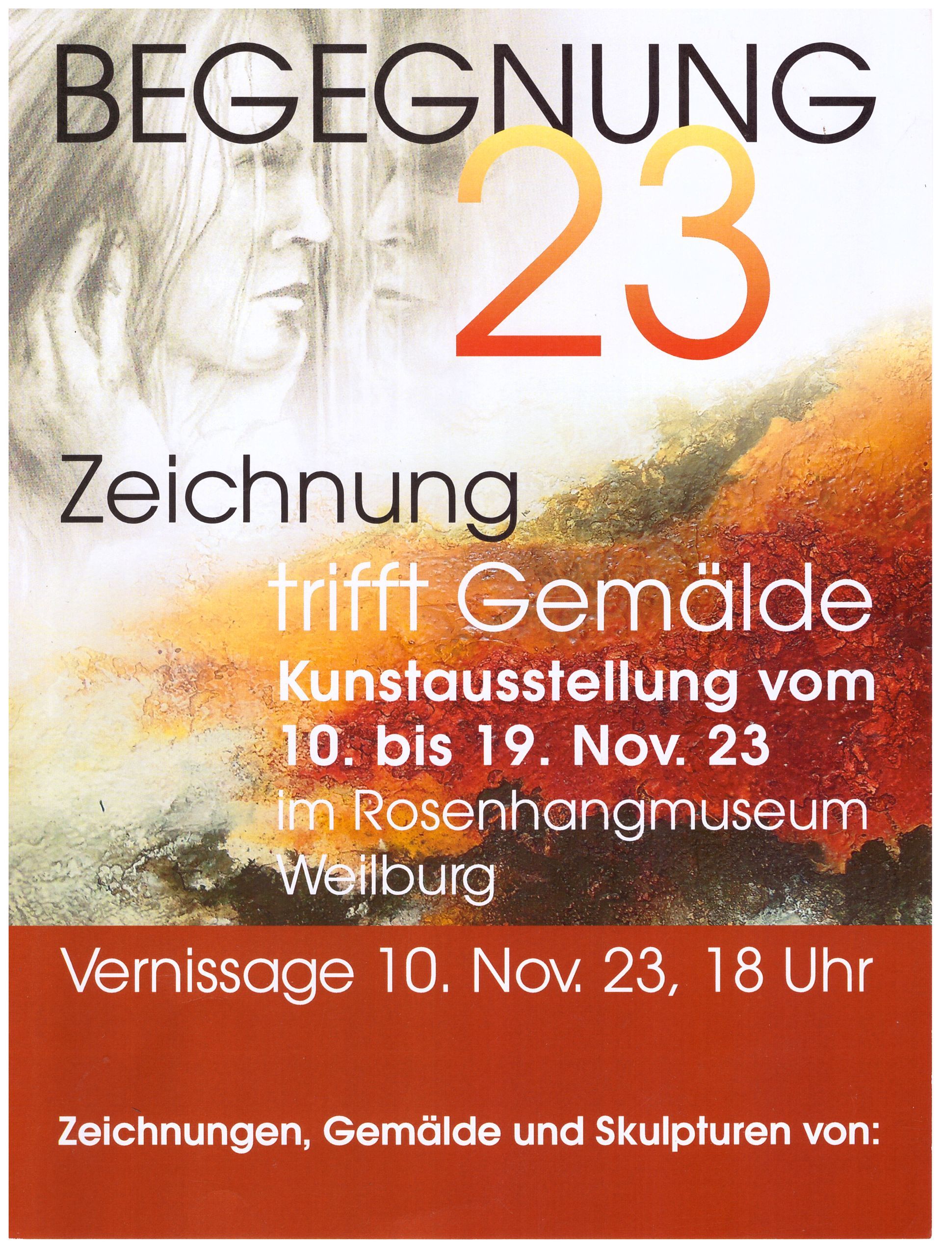 Zusammen mit sechs weiteren Kustschaffenden aus dem weiter gefassten heimischen Raum konnte ich im November 2023 in der Galerie des Rosenhangmuseums in Weilburg eine Auswahl meiner Arbeiten präsentieren.