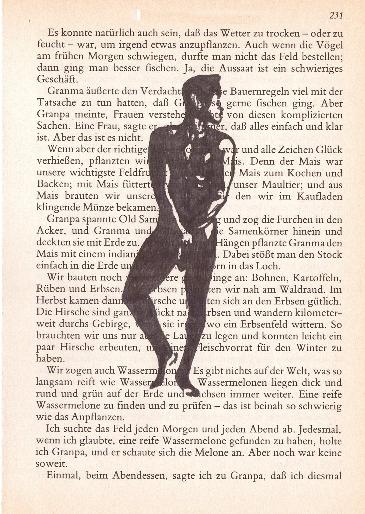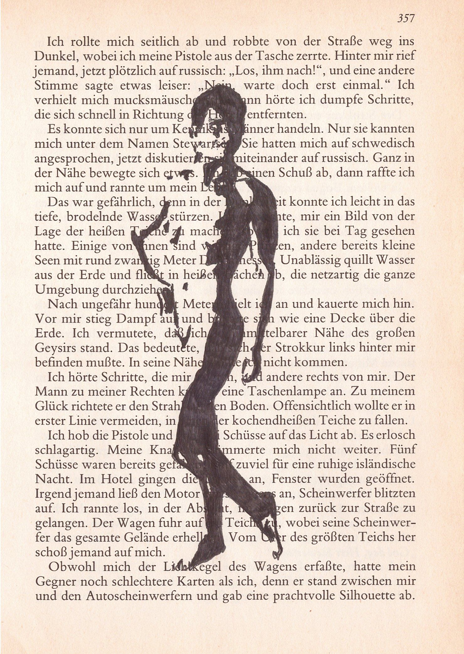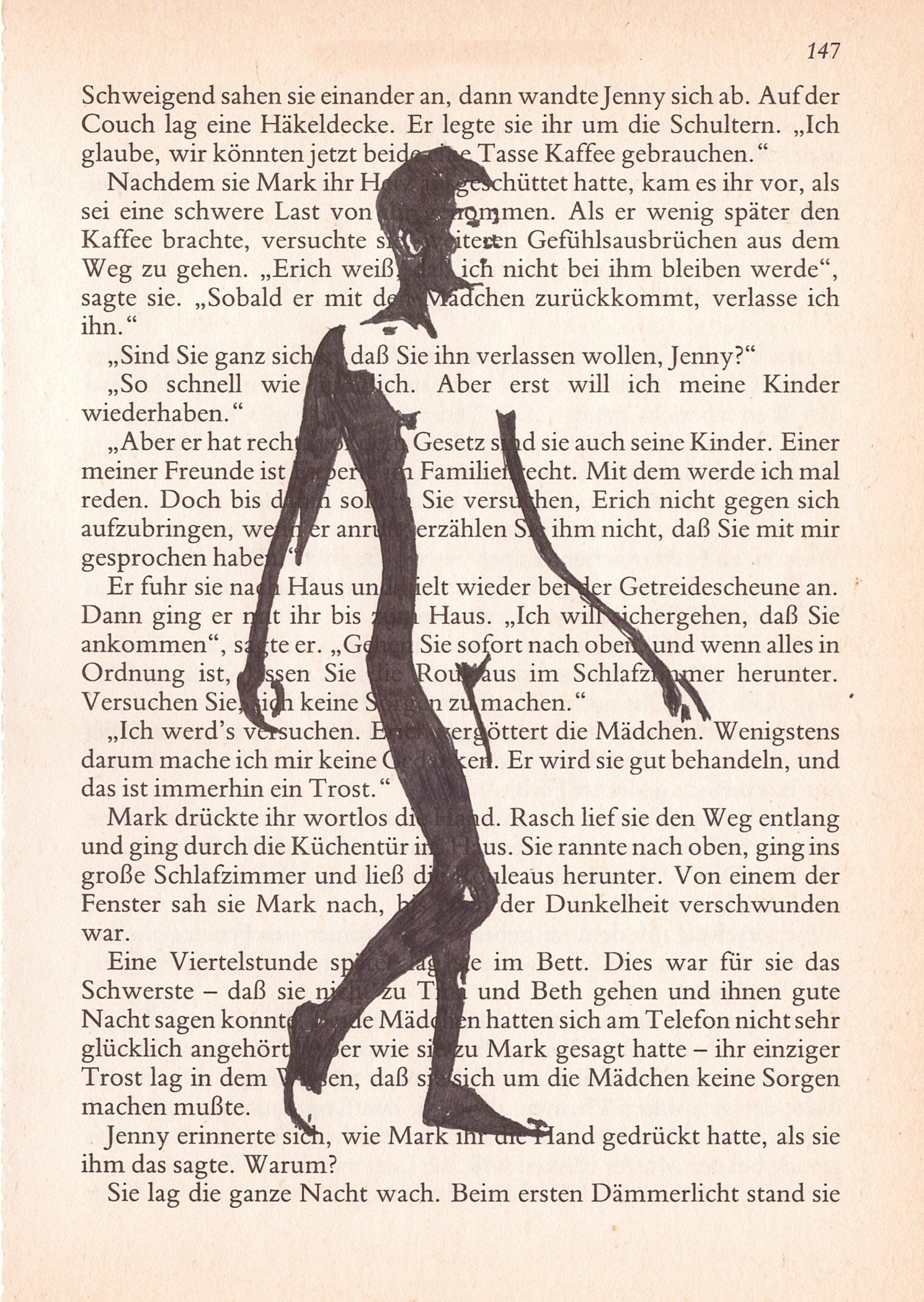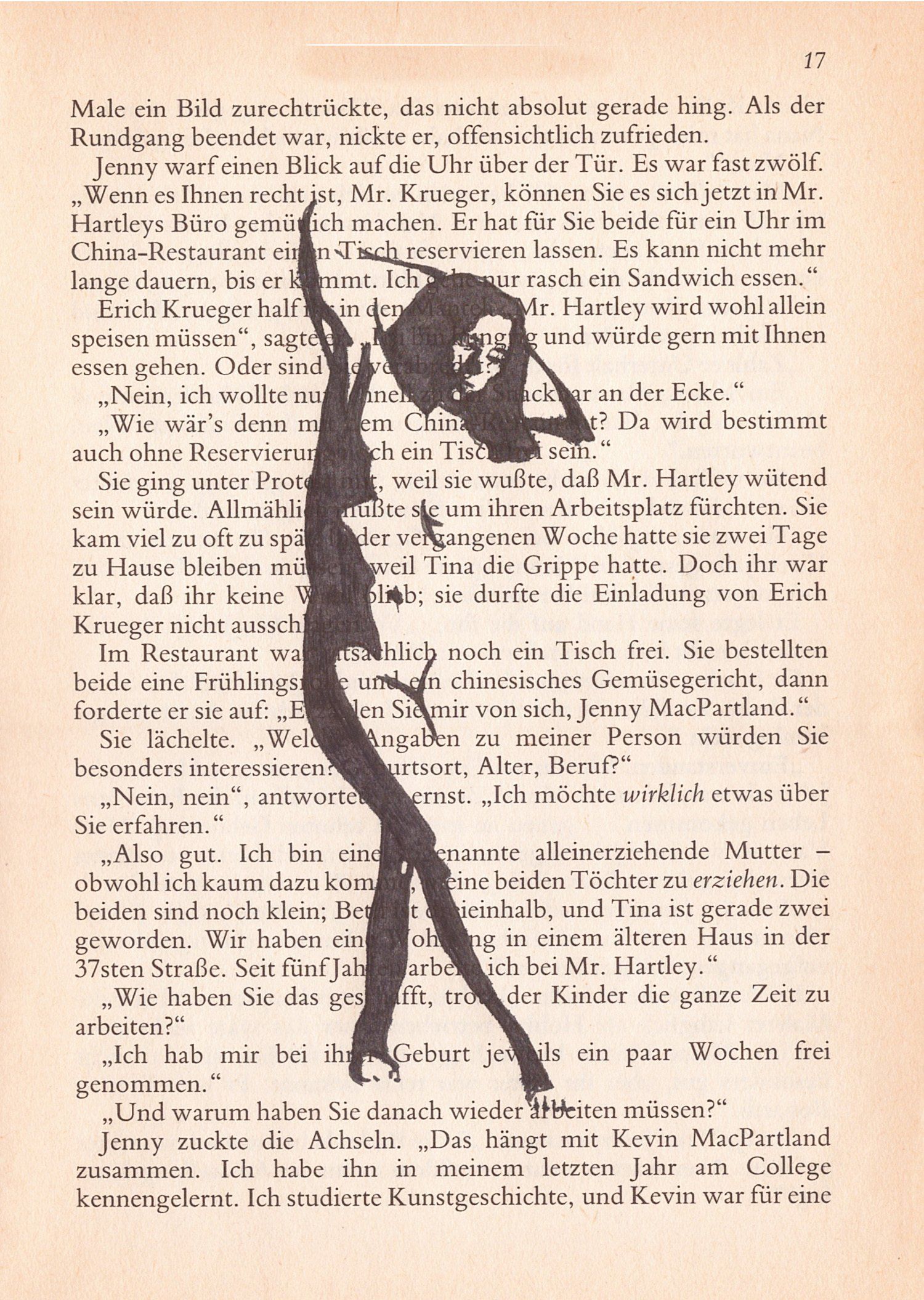 Hierzu zeichne ich mit Tusche auf alte Buchseiten.