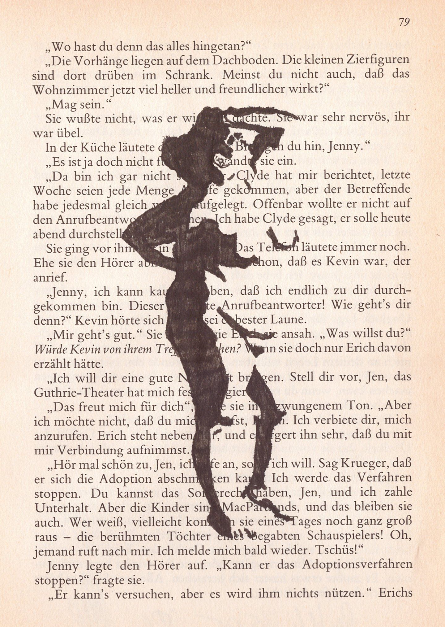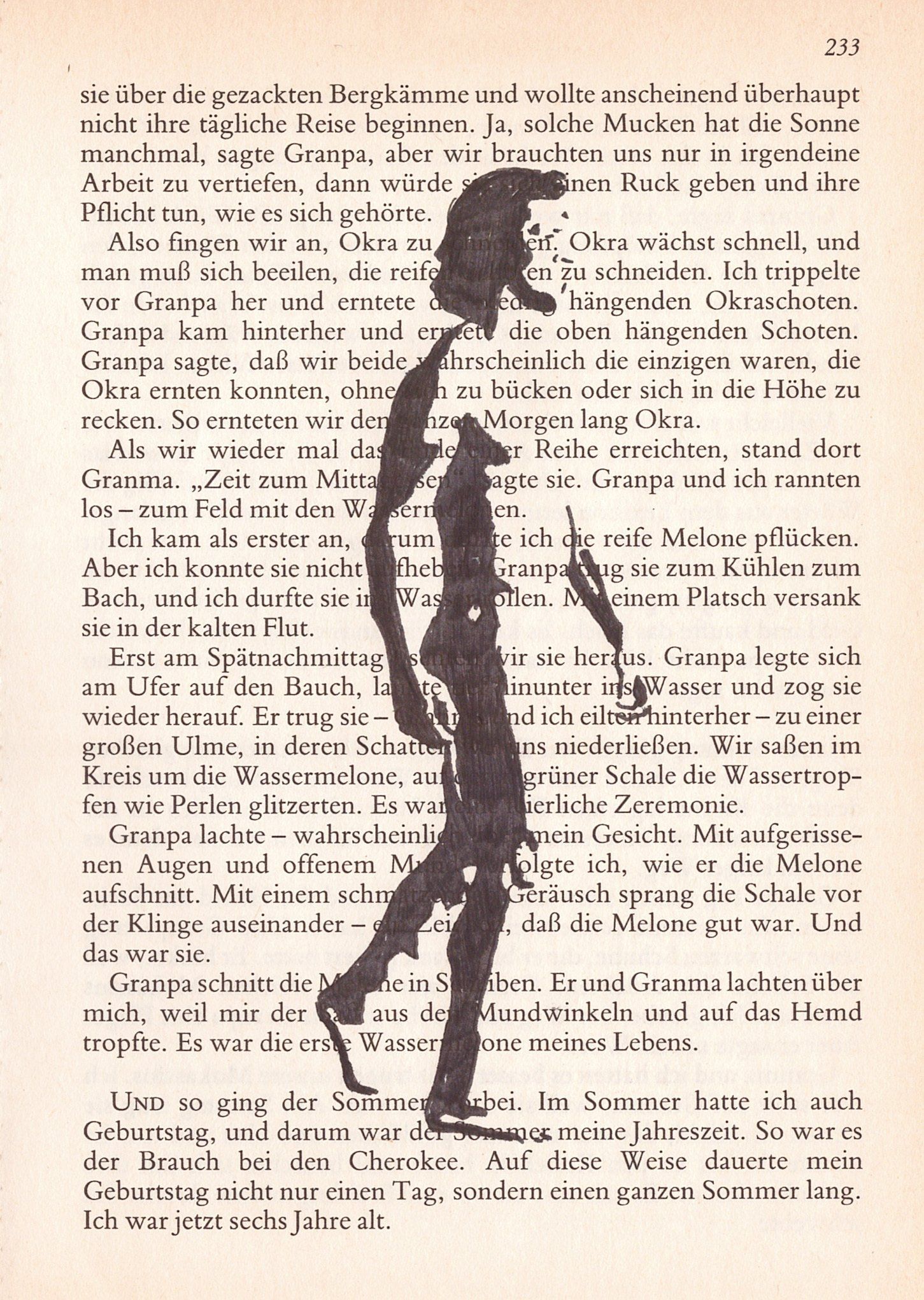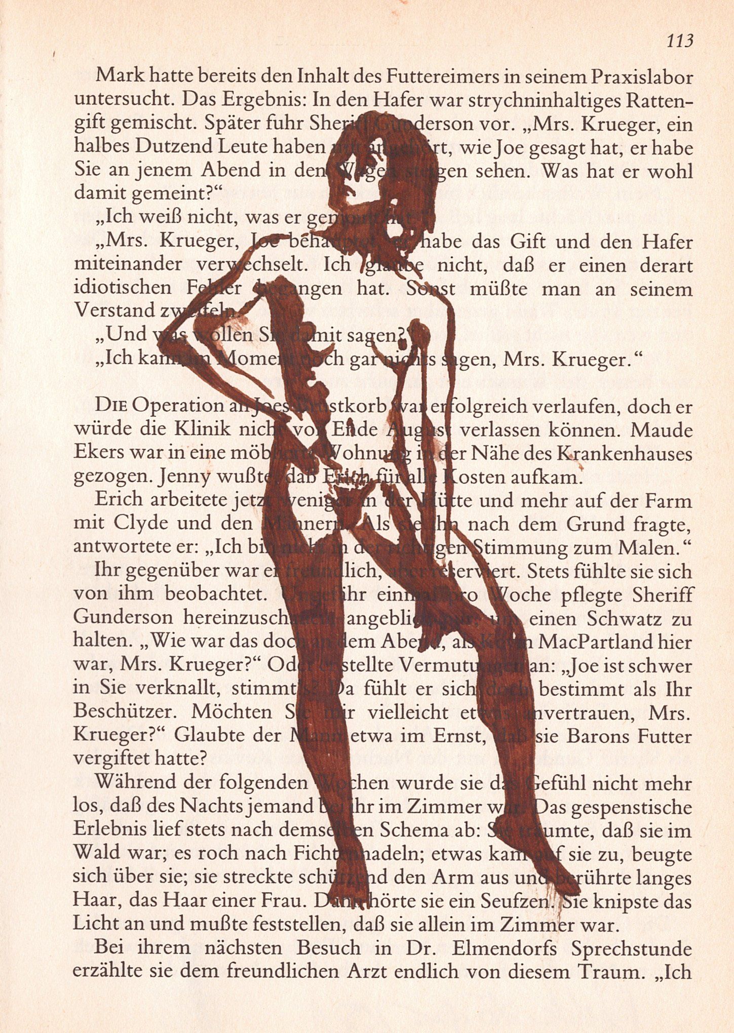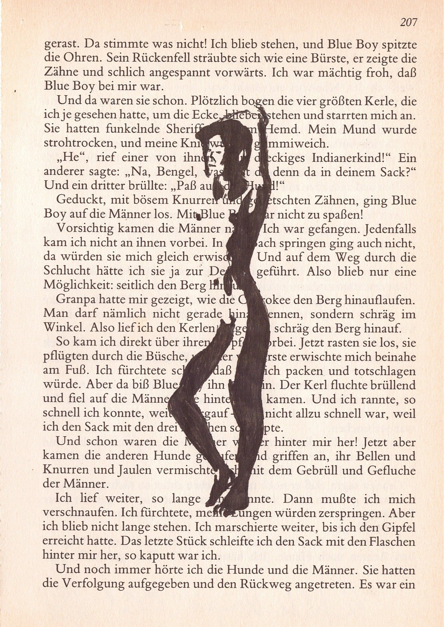 Hierzu zeichne ich mit Tusche auf alte Buchseiten.