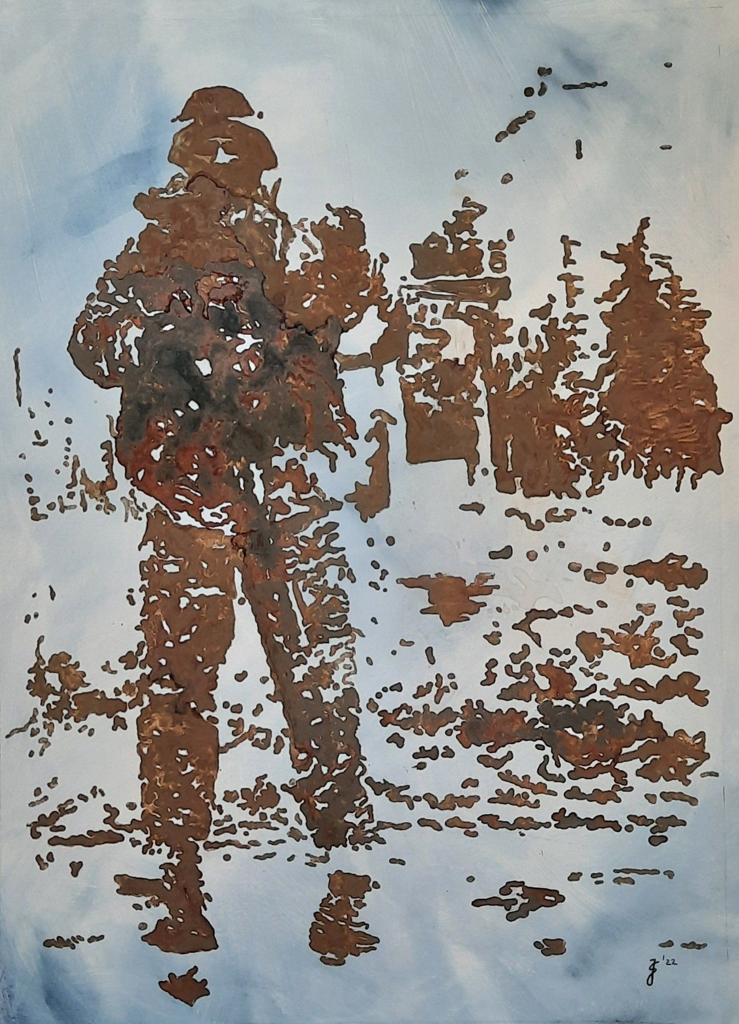 des Jahres 2022 hatte ich das Bedürfnis, dies für mich persönlich sicht- und greifbar zu machen, indem ich überarbeitete Pressefotos auf Karton malte.