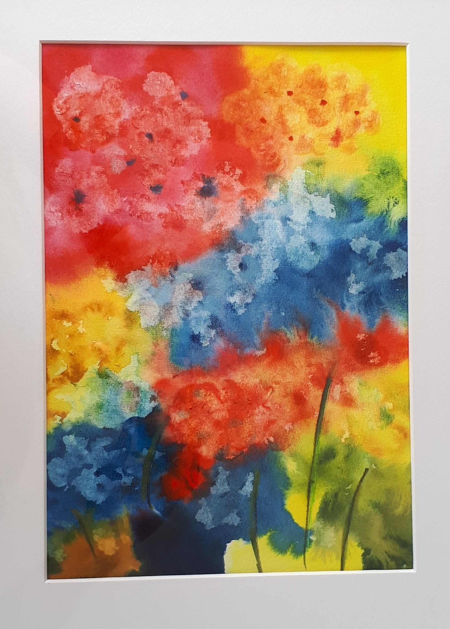 Blumentraum, 60 x 60, Acryl, Tusche und Pigment auf Leinwand (verkauft)