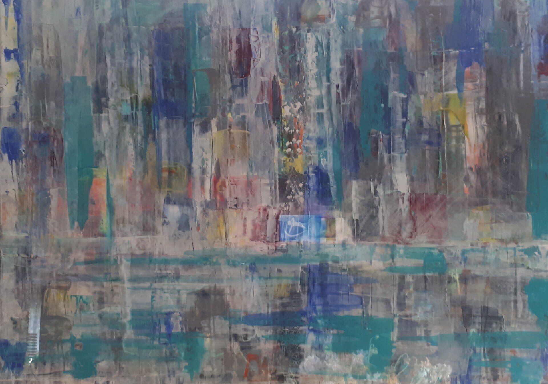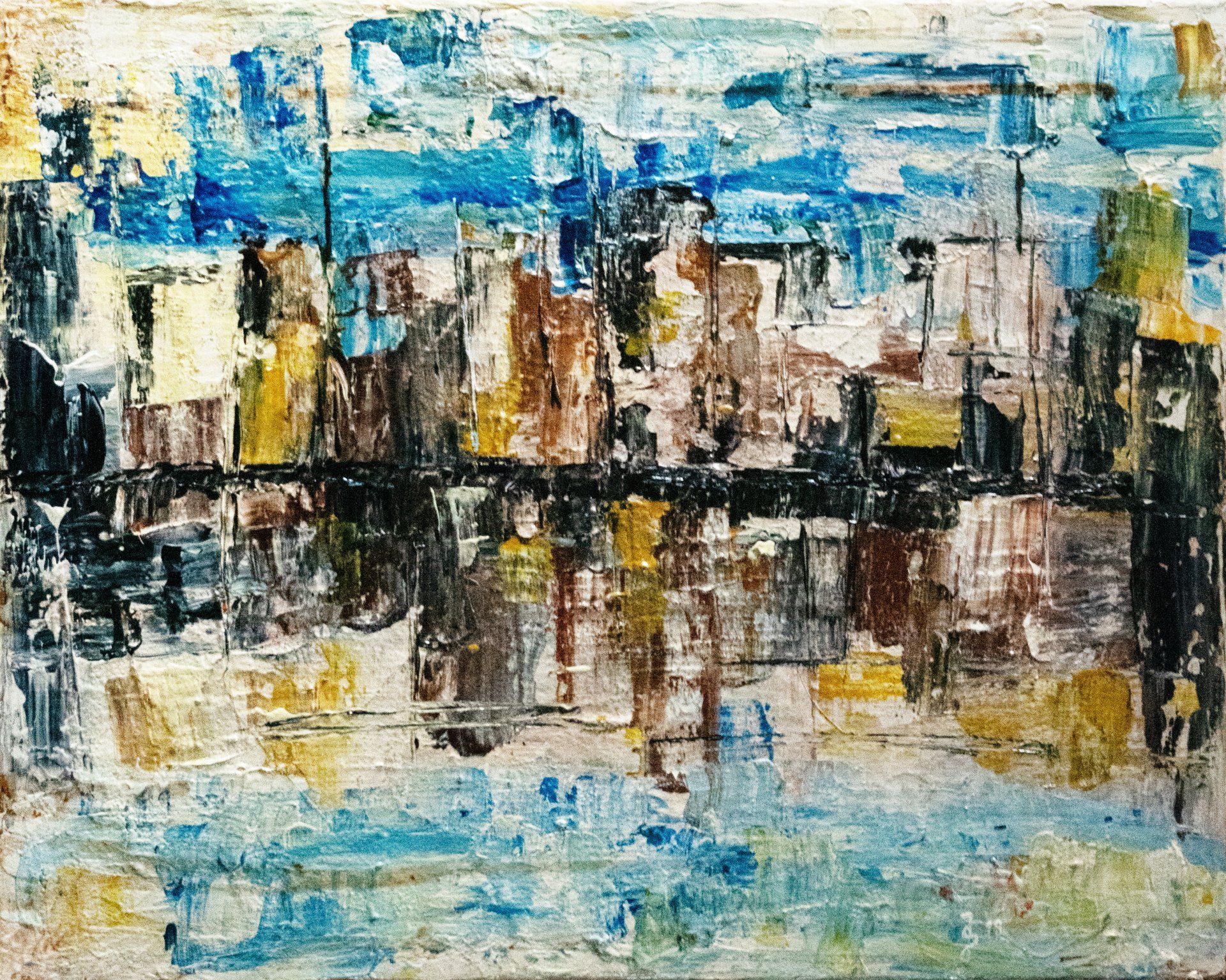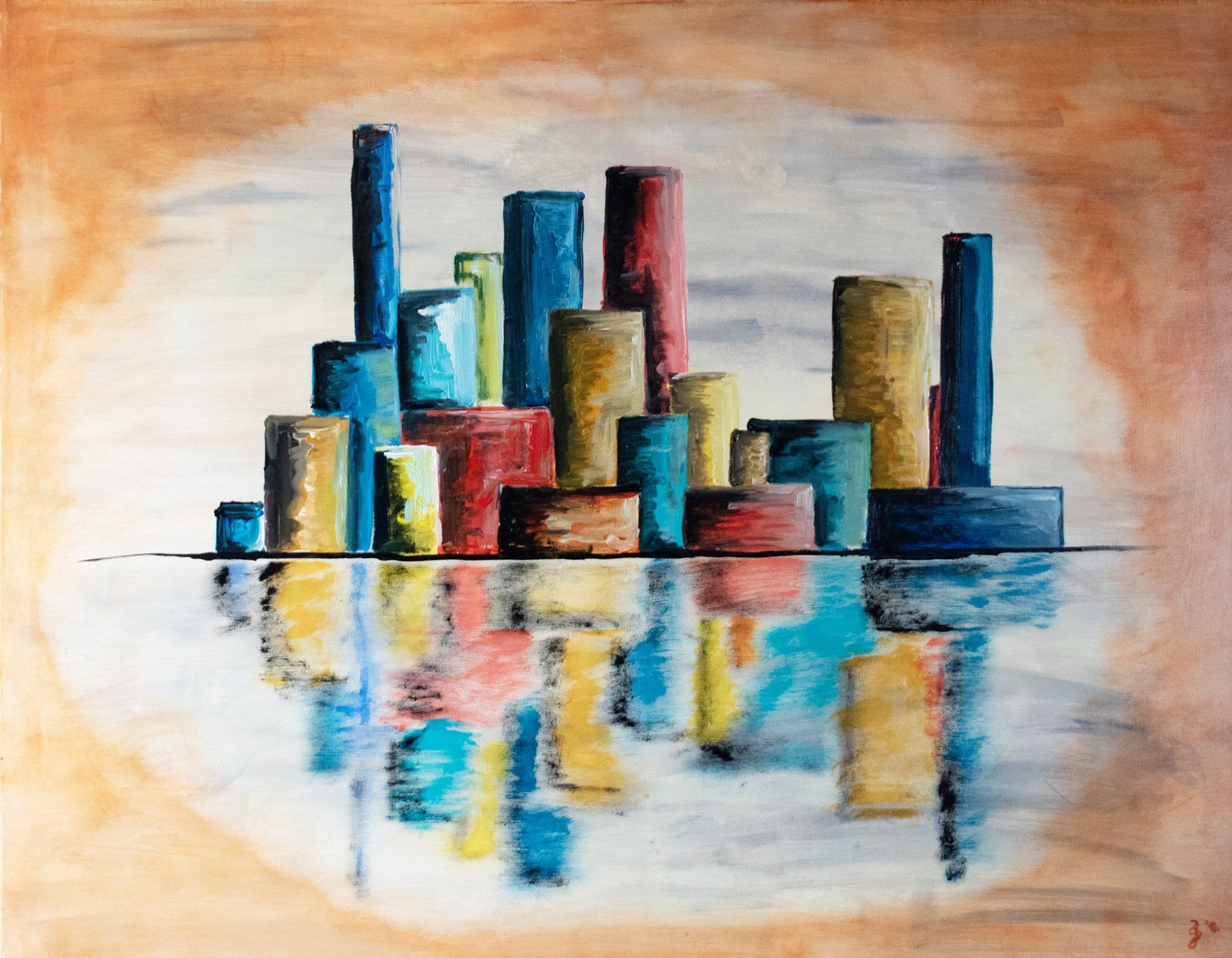 Stadt am See, 70 x 50, Acryl auf Leinwand
